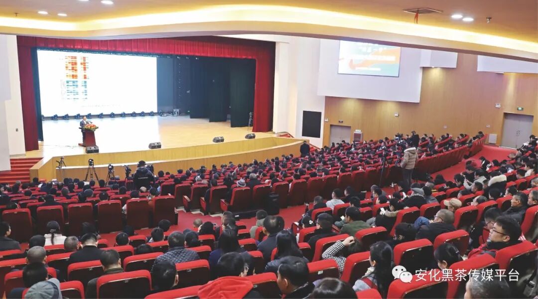 2020年1月14日,中国工程院院士刘仲华教授安化黑茶高质量发展主题报告会在安化大剧院隆重举行。报告会由中共安化县委书记刘勇会主持,安化县委、县人大、县政府、县政协领导和各县直单位、各乡镇领导,各茶企负责人、种茶大户、县茶业协会全体会员和社会爱茶人士共千余人现场聆听报告,数万名全国各地观众通过直播收看报告会。刘院士的主题报告在全国安化黑茶行业引起了强烈反响,这一次报告会对于加快安化黑茶产业高质量发展具有十分重要的指导意义,成为推进安化黑茶产业实现转型升级和绿色健康发展的思想盛宴。标志着安化黑茶做大规模、做优产品、做强产业进入新的历史阶段。