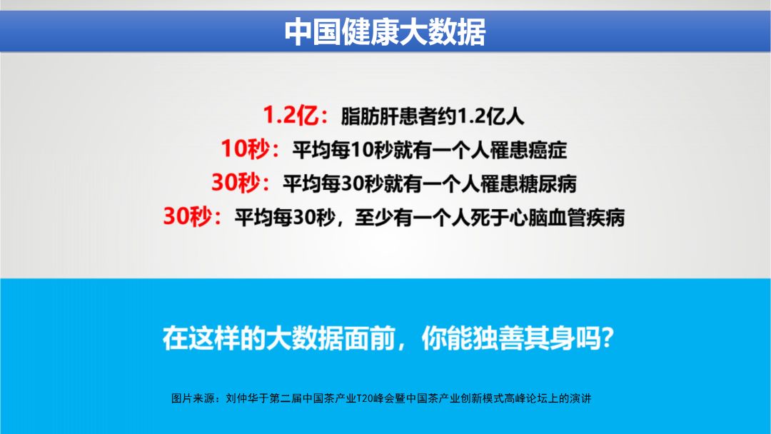 前面提到茶那么多的健康属性,那么在“健康中国”的大时代背景下,茶产业该如何应对?