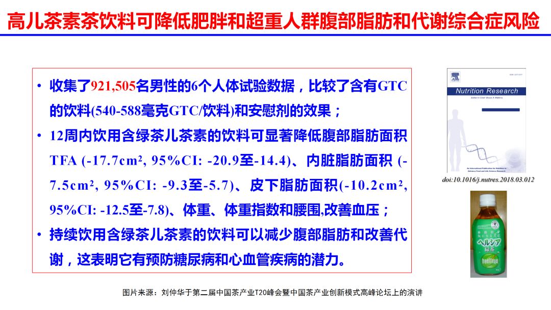 大量的实验证明喝茶可降低肥胖和超重人群腹部脂肪和代谢综合症风险。