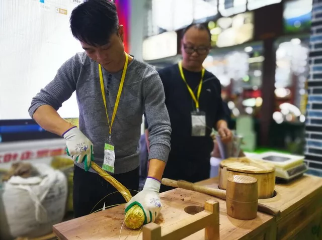 安化黑茶展区,湖南省云上茶业有限公司展示手工筑茶技艺