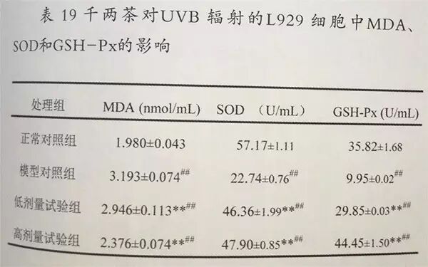 千两茶对UVB辐射上起的氧化损伤的保护作用