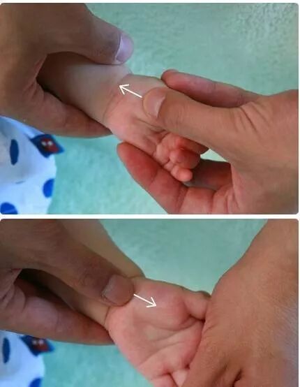3、掐五指节,宝宝受到惊吓之后的常用手法。