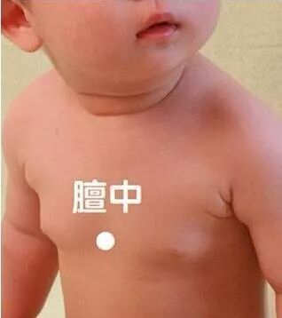 [位置] 在胸骨上,两乳头连线之中央,属任脉