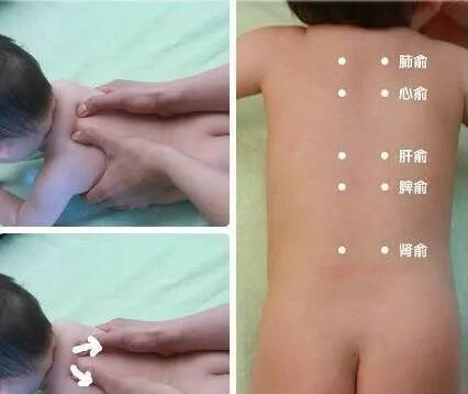[操作] 用两拇指或用示、中二指揉两侧肺俞,称揉肺俞;用两拇指分别自肩胛骨内缘从上向下推动100次,称分推肺俞,或称分推肩胛骨。