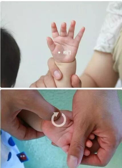 [操作]用拇指按揉板门称为揉板门,顺时针、逆时针都可以。从腕横纹推向拇指根称为横纹推向板门,可以止吐。反之,称为板门推向横纹,可以止泻。