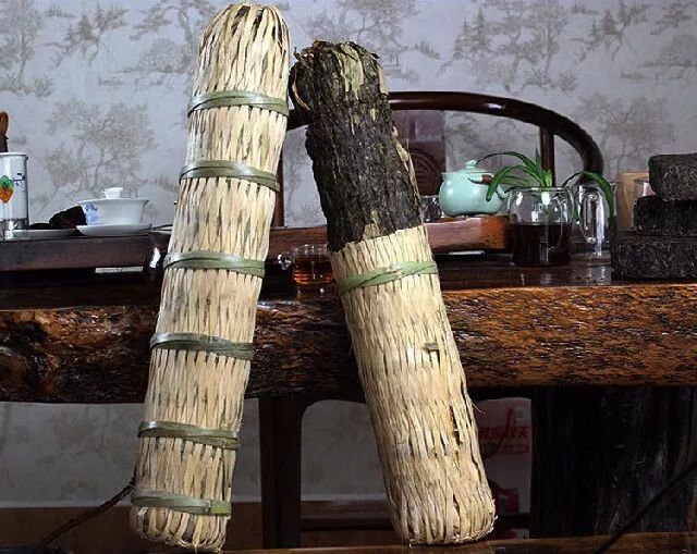 花卷茶:又称“千两茶”,是以二级、三级安化黑毛茶为主要原料,经过筛分、拣剔、拼堆等工艺加工后,再采用汽蒸、装篓、压制、日晒干燥等工艺加工而成。外形呈长圆柱体状的安化黑茶成品以及经过切割形成的各种规格的茶饼,包括千两茶、五百两茶、三百两茶、百两茶、十六两茶等规格的产品,以及在保证产品质量情况下创新研制出的其它同类型新产品。