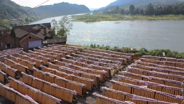 自然晾置。安化黑茶的紧压茶系列产品,部分产品采用自然晾置干燥方法,如安化千两茶踩制后要经40余天日晒夜露,自然干燥,湘尖茶成篓后也要经过近20天的晾置干燥,在此过程中茶叶内的水分在一种周期性的变温条件下,不断的缓慢蒸发和重新分布,最后达到满足长期贮藏的适度干燥状态,这一过程实际上也是造就安化黑茶独特品质的重要工序。