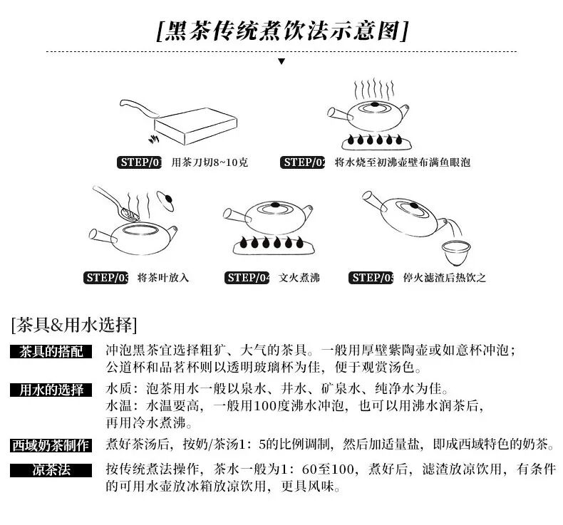 陈化得宜的黑茶,不苦不涩,耐冲泡,品质好的黑茶冲泡十余泡还显风味;即使久浸亦能入喉。