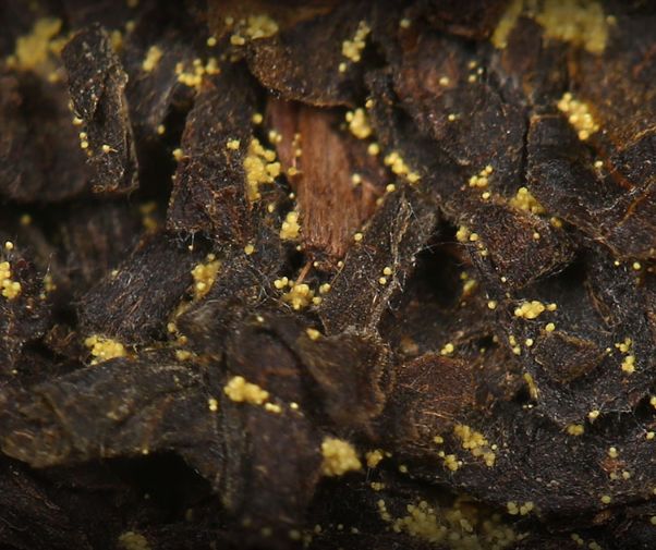 茶色小颗粒是黑茶中的精华“金花”学名“冠突散囊菌”,是一种对人体极为有益的菌体,全球只有湖南黑茶中含有这种物生物菌体。日本相关专家提取这种菌体制做成保健品,每克的售价比黄金还贵。