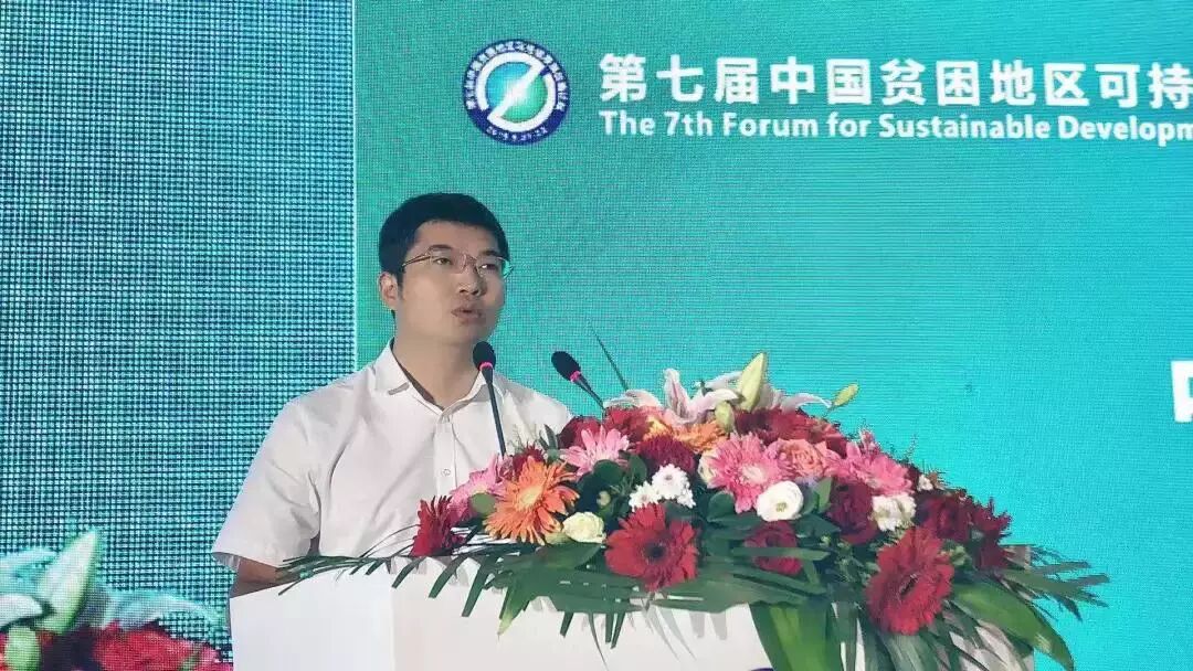 在第七届中国贫困地区可持续发展战略论坛闭幕式上,中共安化县委副书记、县长肖义发言。