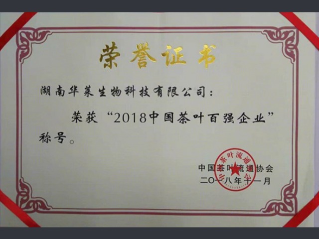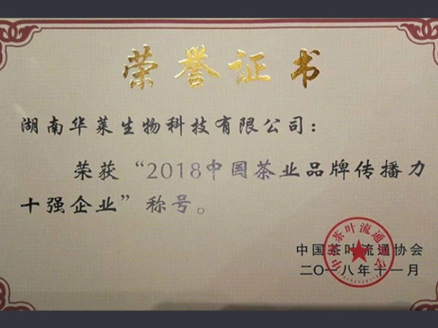 湖南华莱荣获“2018中国茶叶百强企业、中国茶业品牌传播力十强企业”荣誉称号