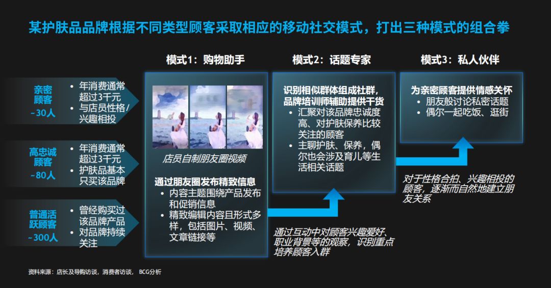 一份腾讯和BCG的报告显示,许多线下门店的CRM自从从传统的电话+门店+短信转到社交私域运营,有效互动客户数量可以翻1.5-2倍,沟通效率提高3-4倍,单次平均互动时长提高2-3倍。