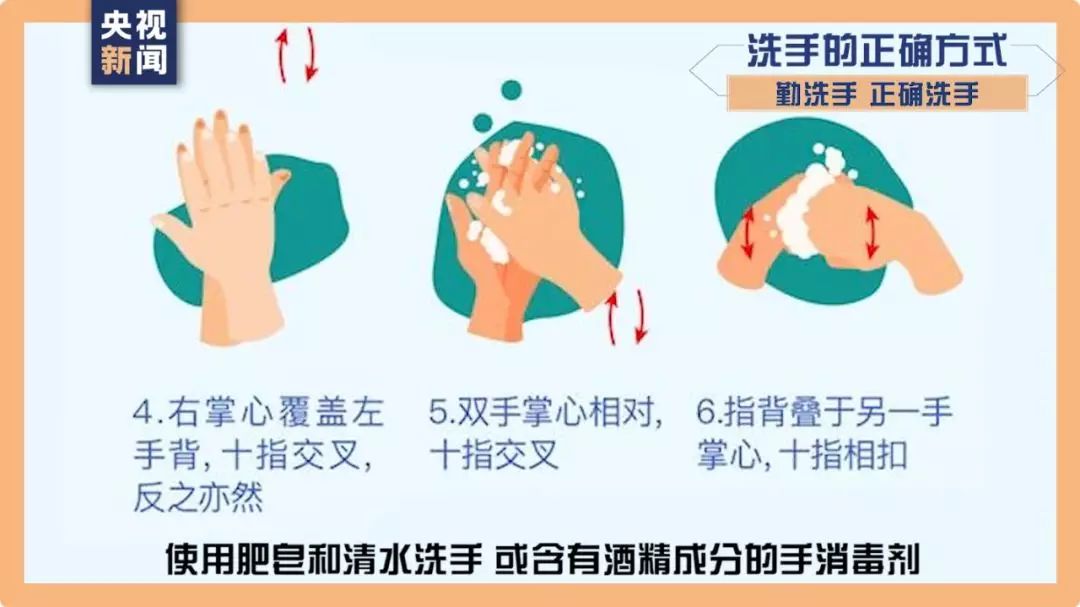洗手时应注意使用肥皂、香皂、洗手液等清洁用品,并用流动水冲洗,时长不少于20秒。