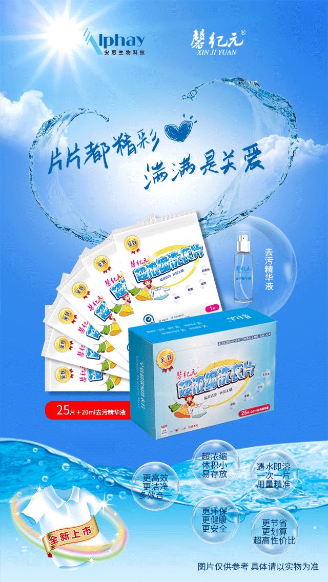 洗衣片是一种新型的多功能生态洗涤新产品,与传统方式相比,大大提高了产品的去污能力 ,无磷,无添加,无荧光,遇水后即可迅速分解溶化,释放纳米级洁净小分子,更深层更彻底地净化沉积在衣服上的顽渍,绿色便捷、多效合一,也是未来洗衣产品的发展方向。