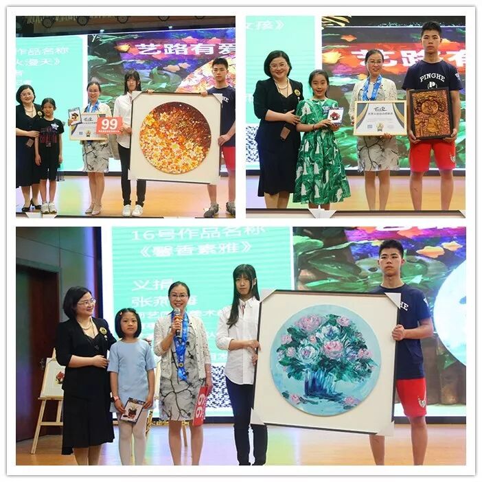 有一群孩子,犹如天上的星星,一人一世界,独自闪耀,本次义拍的16幅充满想象力和灵动色彩的油画作品,都由江海小记者和这些“星星的孩子”一起绘画而成。义拍现场场面火热,爱心人士们纷纷竞价,不到2个小时的时间里,本次义拍的所有拍品全部成交。