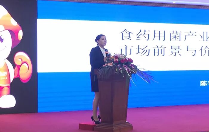 陈李华带来《食药用菌产业市场前景与价值》的专题讲座。她向与会人员详细讲解了食药用菌对人类健康的重要意义,并且从食药用菌年产量的增加、栽培模式的规范化和加工方式的精深化三个方面向大家展示食药用菌产业在中国广阔的发展前景。她还介绍了安惠公司在食药用菌领域的雄厚实力和卓越的百菌健健康食品,赢得全场一阵阵掌声。