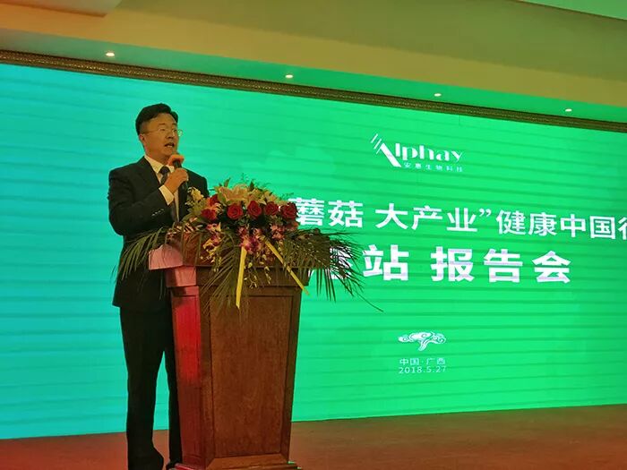 广西大学食用菌研究所所长、广西食用菌协会副会长、广西大学农学院教授、博士生导师刘斌,安惠公司市场部副总监顾峰,安惠商学院培训经理陈李华等出席此次报告会。