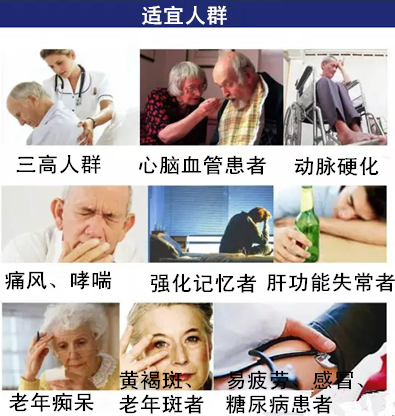 有提高机体各种酶活性,特别是超氧化物歧化酶的活性,防止血管表层损伤,提高血红蛋白释放氧能力,提高红细胞变形能力,扩张封闭的微血管,还有降低血液黏度与降血脂等作用,所以有明显的保护血管和提高血液通过的能力、防止大血管血容量过高而产生的高血压,