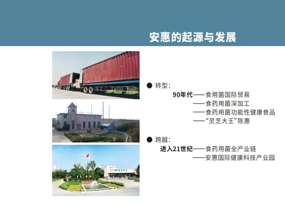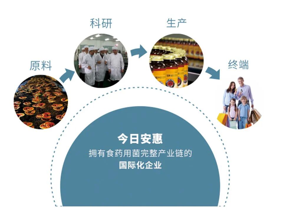 今日的安惠公司,作为食药用菌行业的龙头企业,拥有从食药用菌的菌种培养、栽培、研发、生产和服务终端等环节的自主知识产权,是中国乃至世界拥有食药用菌产业链完整的企业之一。