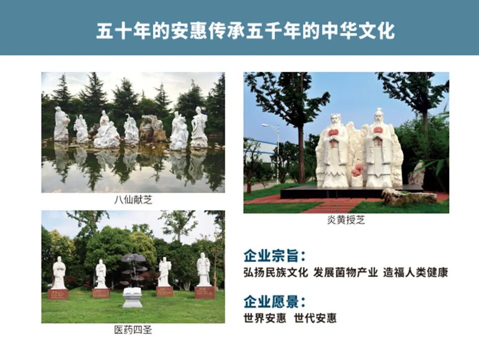 安惠园以灵芝为主题的雕塑群,生动地向世人展现了安惠创新食药用菌产业的深厚意蕴和丰硕成果。