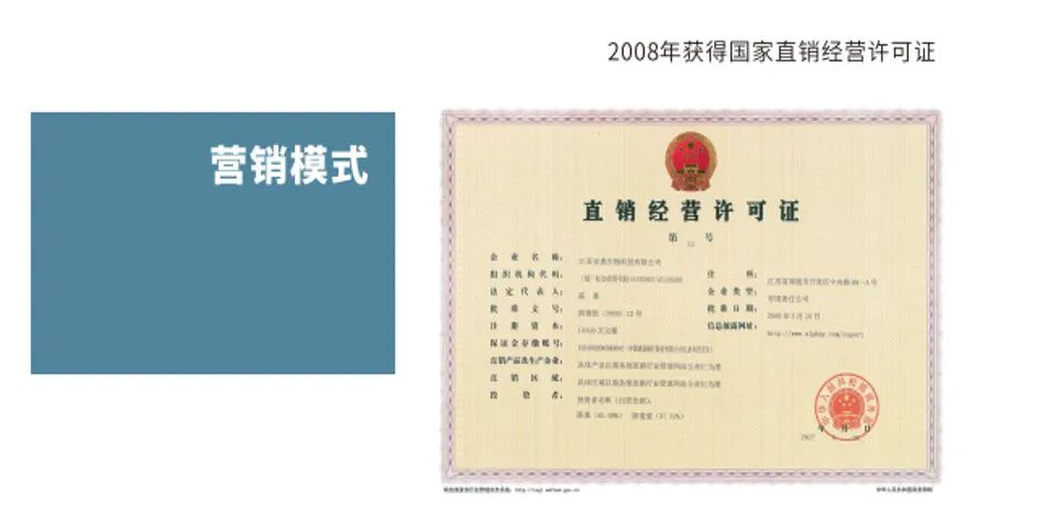 中国以直销模式运作的公司很多,目前拿到直销牌照,从事合法直销的企业少之又少。在中国,获得直销牌照的企业,迄今为止只有90几家,安惠公司是第21家获牌企业,前20家获牌企业基本都是中外合资或者外商独资,或者国家控股的企业,这充分说明安惠在中国直销行业的地位和政府的认可度。