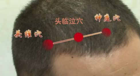 先找到头维穴与神庭穴,头维穴在头侧部发际里,位于发际点向上一指宽,前发际正中,直上1横指处,为神庭穴。在神庭穴与头维穴连线的中点处,为头临泣穴。头临泣穴直上1横指处,就是目窗穴。