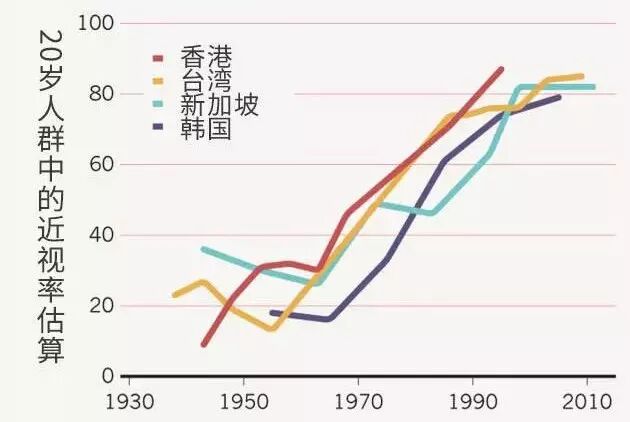 60年前,中国人口的近视率是10%~20%。而今天,近90%的青少年和成年人都近视了,小学生的近视率更是接近40%。