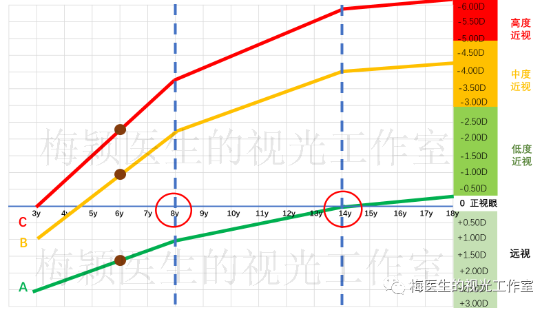专家研究发现,近视的发展与年龄呈负相关,也就是年龄越小,近视度数增长的速度越快,而年龄越大,近视度数增长的速度越慢。
