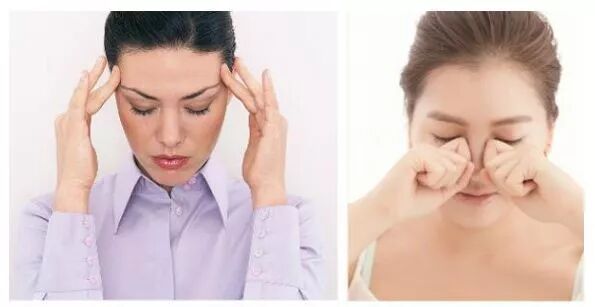 用双手食指指端分别压在双侧太阳穴上旋转,顺时针、逆时针各揉按10-15次。