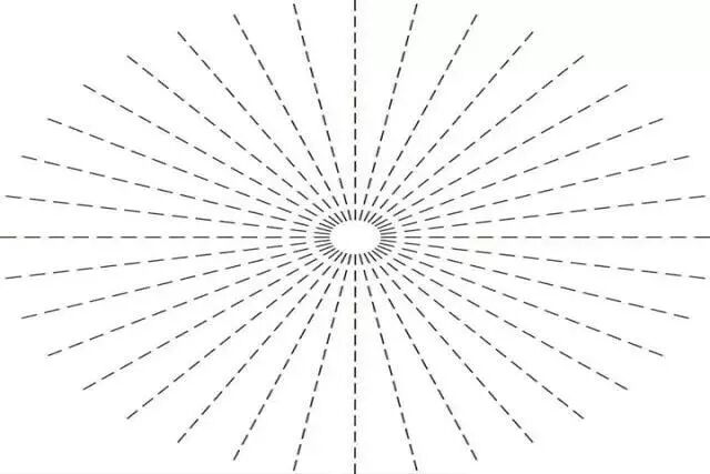 如所有虚线均匀排布,没有特别的深浅区分,则不存在眼睛明显的散光现象。