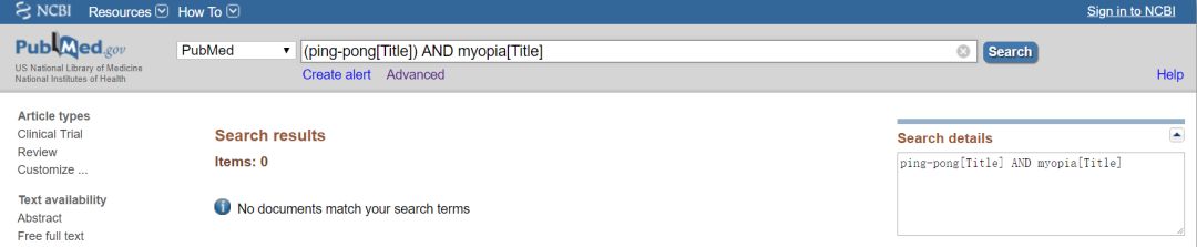 截止发文日期,在外文数据库中,以“ping-pong(乒乓球)”和“myopia(近视)”为关键词搜索,没有一篇科学研究报道乒乓球和近视的关系。