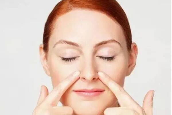 用两手食指顺着鼻子挤压,由上至下挤压12次,可促进鼻黏膜的血液循环,有利于鼻黏液的正常分泌。