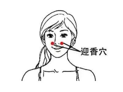迎香穴在鼻翼外缘中的旁开0.5寸的位置,主治鼻塞、鼻息肉、面痒,是辅助治疗鼻塞、嗅觉减退之要穴。
