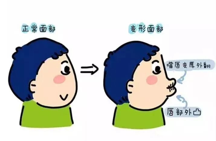 孩子患上鼻炎、鼻窦炎后,长期张嘴呼吸,久而久之,面容就会发生改变。