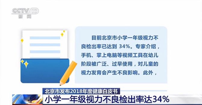 目前北京市小学一年级视力不良检出率已达到 34%。