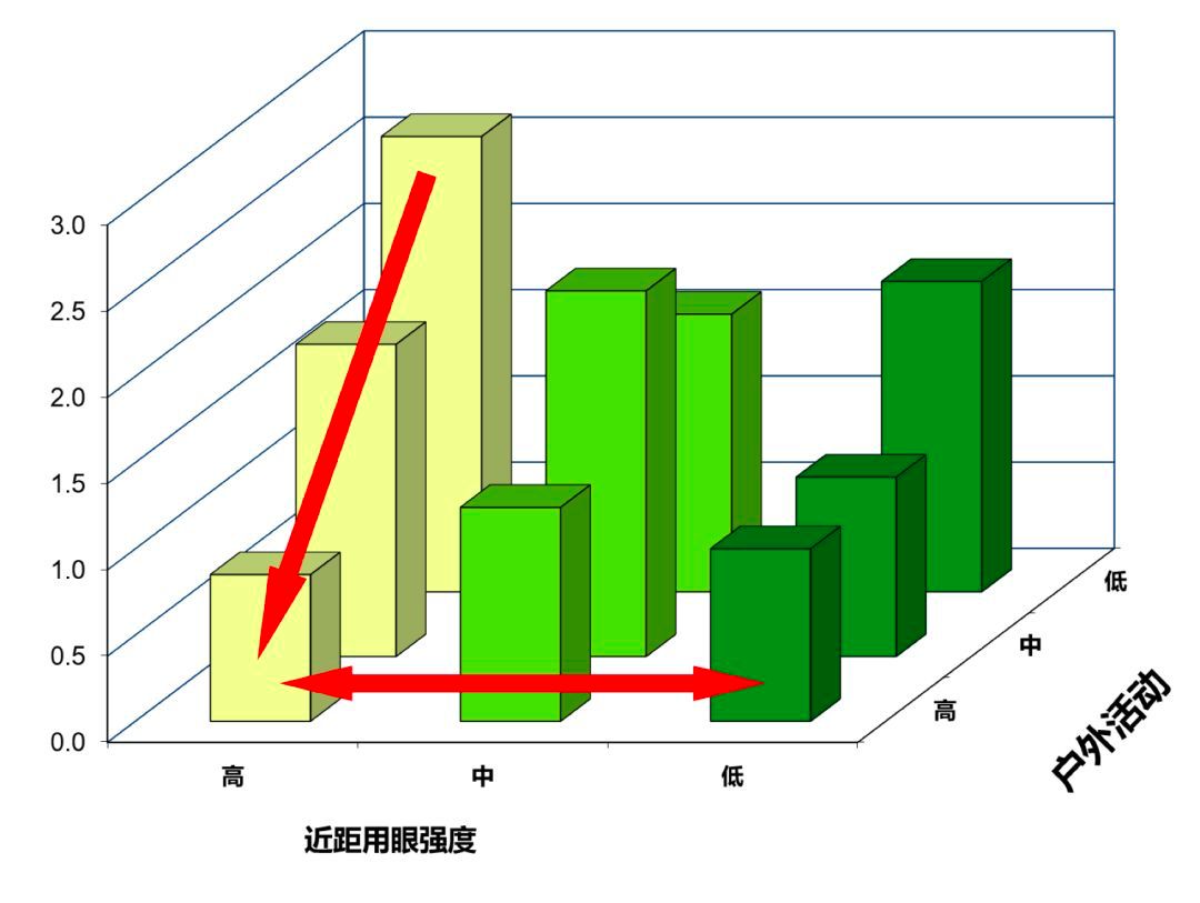 5 年后,有 1/5 的孩子近视了,他们发现,与近视风险密切相关的唯一环境因素是户外活动的时间。