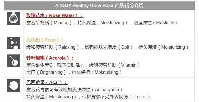 主要成分:玫瑰花水、珍珠粉、针叶樱桃、巴西莓果等植物成分调整肤色粉色系列,对于肤色不均匀、暗黄有很大的改善,涂抹之后会有珠光的效果,更显肤色健康,亮透白,让你裸妆一步到位。