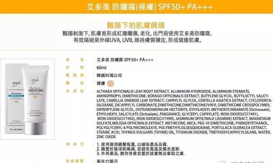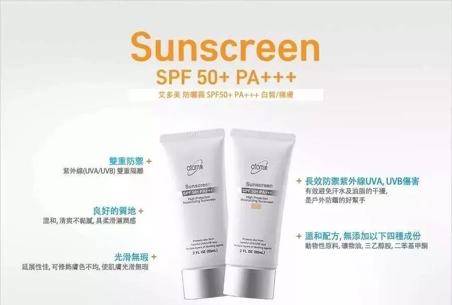 艾多美(atom美)防晒霜出自于享誉盛名的韩国科玛公司。它以草本为原料经过高科技萃取工艺制造,适用于任何皮肤。防晒功能强大,不闷热黏腻,很润泽,很细腻,不干涩,很容易推开 。
