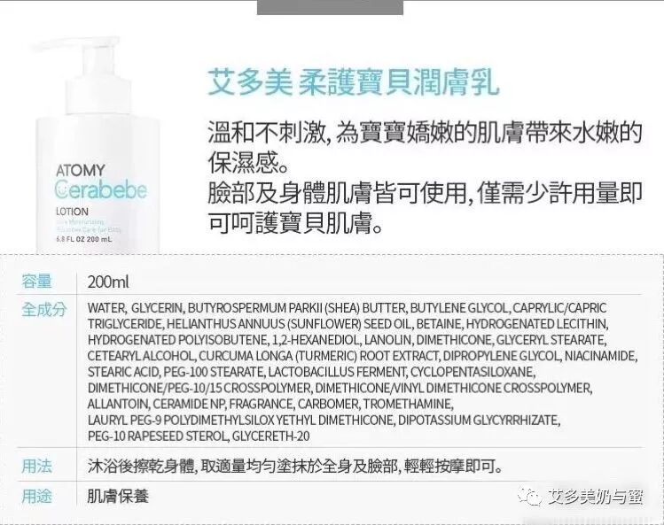 经专门研究人员严格挑选的超低刺激性的、适合婴.幼儿使用的产品。化妆品中添加的乳化剂是从大豆中提取的原料,降低对皮肤的刺激。使用欧洲原料公司婴儿专用的香料,无任何刺激性。