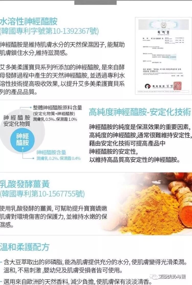 艾多美宝宝洗护产品中使用的神经酰胺是经酵母发酵产生的天然神经酰胺,具有与人体皮肤的神经酰胺有同样的立体排列。使用获得专利的水溶性技术,产品质量相当高档。