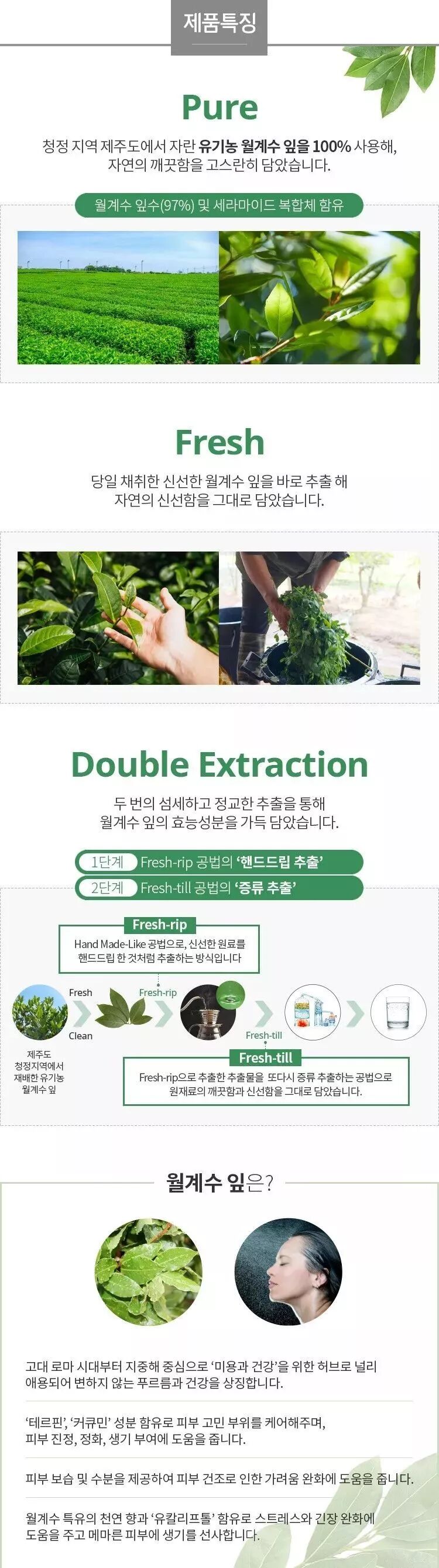 这支月桂树叶精华纯露,原材料都是韩国-济州岛生长的特有有机月桂树叶,严格筛选后,再进行蒸馏萃取。