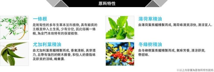 原料:一条根,薄荷草精油,尤加利叶精油,东绿树精油
