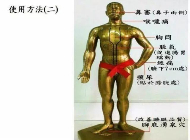 ★头顶痛——将贴布直接放在头顶,黄色面朝上,约放半小时,气通了头也就不痛了,由于吸收过废气,所以使用过就不要贴其他地方了