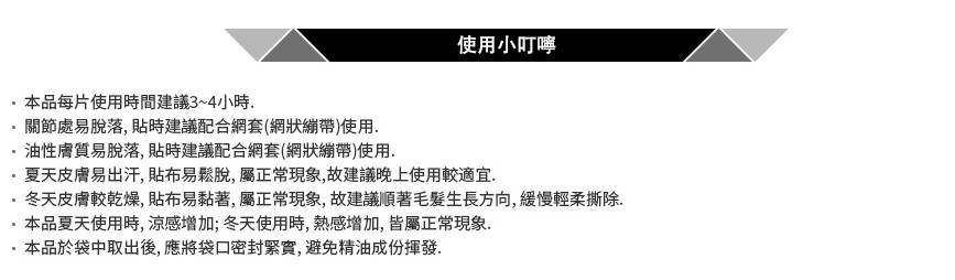 ★改善睡眠——长期失眠者在睡觉前半小時,贴双脚脚底湧泉穴各片,持续一周,慢慢减轻,可长期使用,直到完全改善。