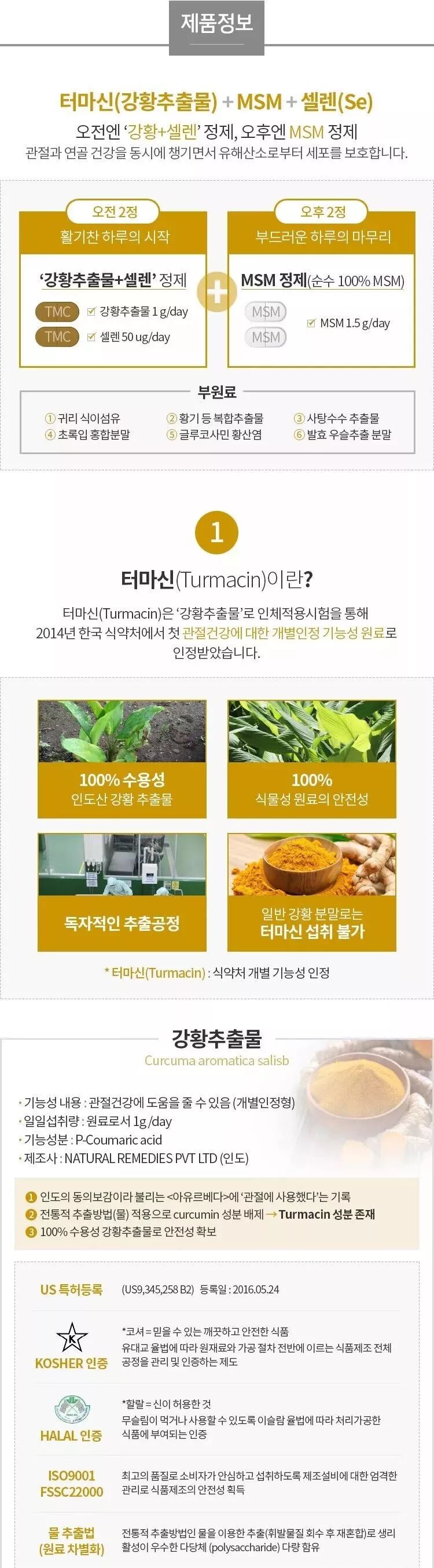 TURMACIN姜黄素:被韩国食品和药物管理局认为是第一个关于关节健康的个别认定机能性原料。( 2014年得到)