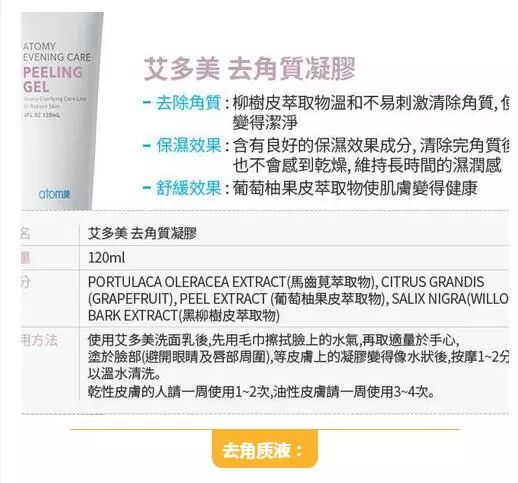 艾多美的去角质液是从柳树叶中提炼出来的,非常柔和。其柔和程度在使用方法上可以充分的体现哦:艾多美的去角质液涂抹后不同于其他品牌的产品,不会直接就揉搓出死皮。而是在涂抹后要给充分的软化死皮的时间(一般三到五分钟,油性皮肤五到七分钟),软化后方可打圈揉搓,才能搓出死皮哦!如果涂抹完就直接搓那当然是滑滑滴什么都搓不出来了。