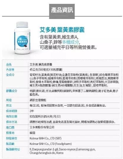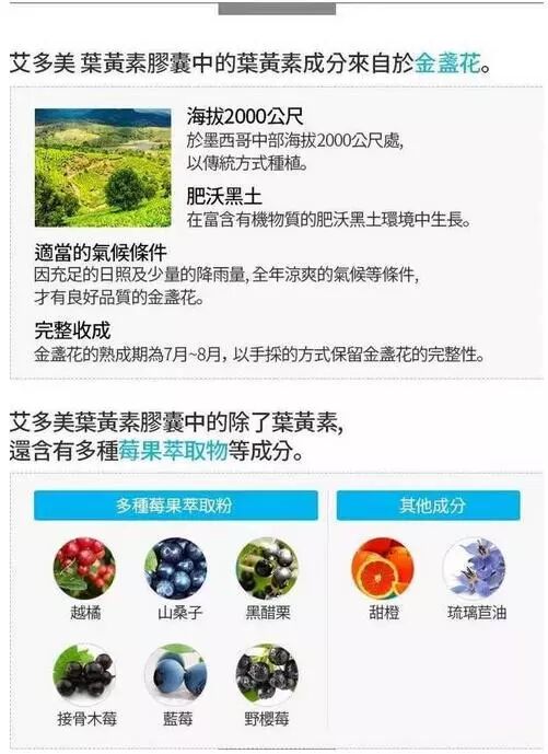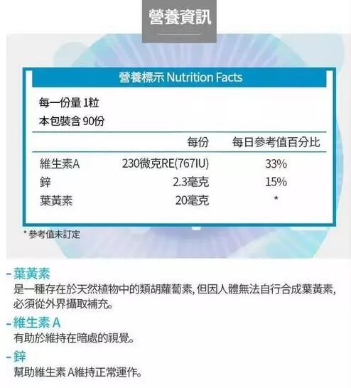 叶黄素,维生素A,锌,黑莓20%(附原料)等