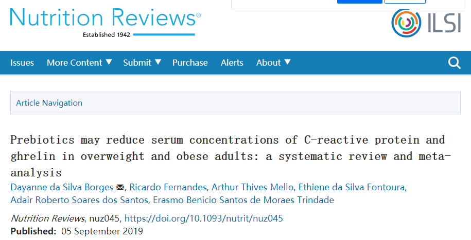 该综述中涉及的试验均采用对超重或肥胖的个体进行随机对照的方法,定期补充益生元或合生制剂。截至2018年3月7日,研究人员共筛选了13项试验。其中1项研究评估了瘦素,4项评估了饥饿激素,10项评估了CRP(C-反应蛋白)。