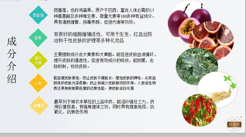 纤本堂拍拍瘦采用天然的植物成分,从而让产品更健康更安全,包括狭叶青蒿提取物、莲叶提取物、霍霍巴油等高端成分。