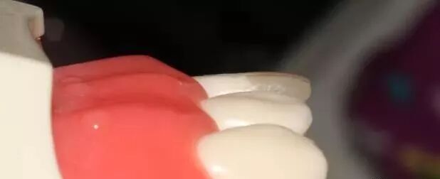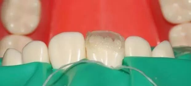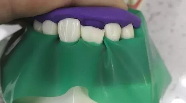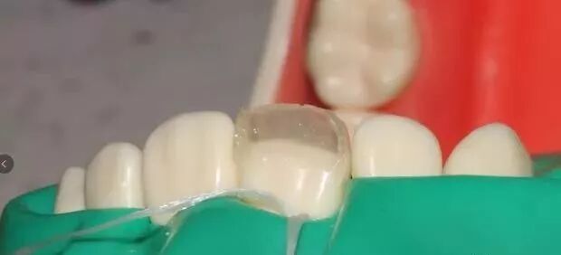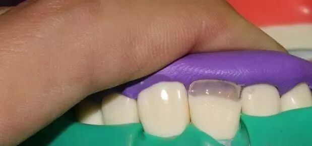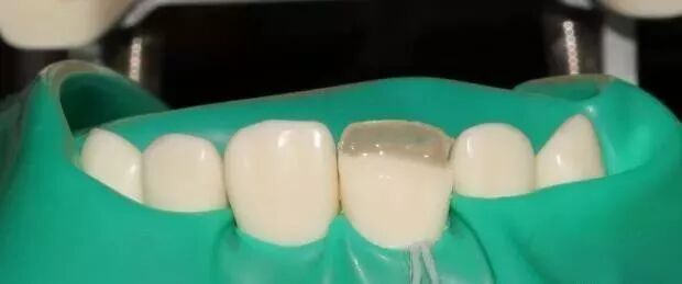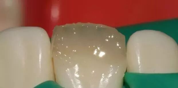 制备,唇侧45度短斜面,舌侧垂直,涂布粘结剂20s,等20s,再次涂布20s,等20s ,光照,腭侧的堆塑,用釉质树脂,越薄越好。